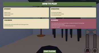 Through the view point of man's best friend, search the house for anything and everything to help fill his tummy.